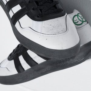 The Aloha Super has become a limitless vehicle for Mark Gonzales' imagination. Inspired by the zine aesthetics of his '90s clothing brand KOOLS, the latest model features KOOLS embroidery and a sublimation-printed upper that reveals a second layer as it wears. The fencing-inspired shoe offers board feel and grip in a durable cupsole construction with an artful touch by The Gonz. Made in part with recycled content generated from production waste, e.g. cutting scraps, and post-consumer household waste to avoid the larger environmental impact of producing virgin content.