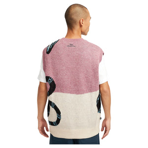This sweater vest is soft-yet-structured and perfect for layering. The intricate knit snake artwork is made from four colors of yarn in a heavyweight knit.