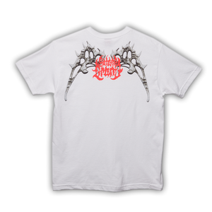 Enter the world of Drano, the portal to hot sauce culture's edgiest looks. explore our hand-drawn fashion, inspired by industrial grindcore that doesn't exist yet, featuring classic typography mixed with gothic imagery. Our intricate bone wing design embodies the sinister charm of satanic condiments, where fashion meets petty crime.