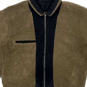 100% COTTON DENIM, FAUX SHERPA LINED, BROWN CONTRAST STITCHING, DUAL ZIPPER, ELASTIC CINCH CUFFAND HEM, SINGLE WELT SIDE POCKETS, INTERIOR TALL CAN POCKET, WOVEN LABEL ON SIDE SEAM. ZIP JACKET.