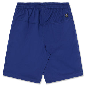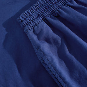 Lightweight twill shorts with a relaxed Freedom Fit and tapered loose legs. Made from 100% cotton in Dark Blue, featuring a regular waist with elastic waistband and hidden drawstring. Finished with side seam front pockets, a welt back pocket, and a woven label for a clean look.