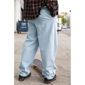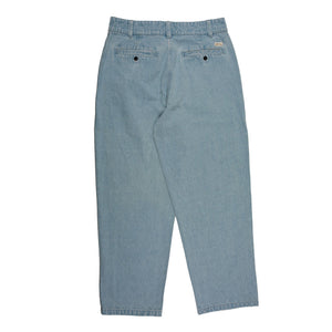 Based on denim pants of the 80's and 90's, they decided to offer a new denim style that is versatile enough to be dressed up or down. These are made from the same rugged 12oz denim as their Plaza Jeans, but in a relaxed trouser cut with traditional pleat detailing at the front and buttoned pockets at the back.